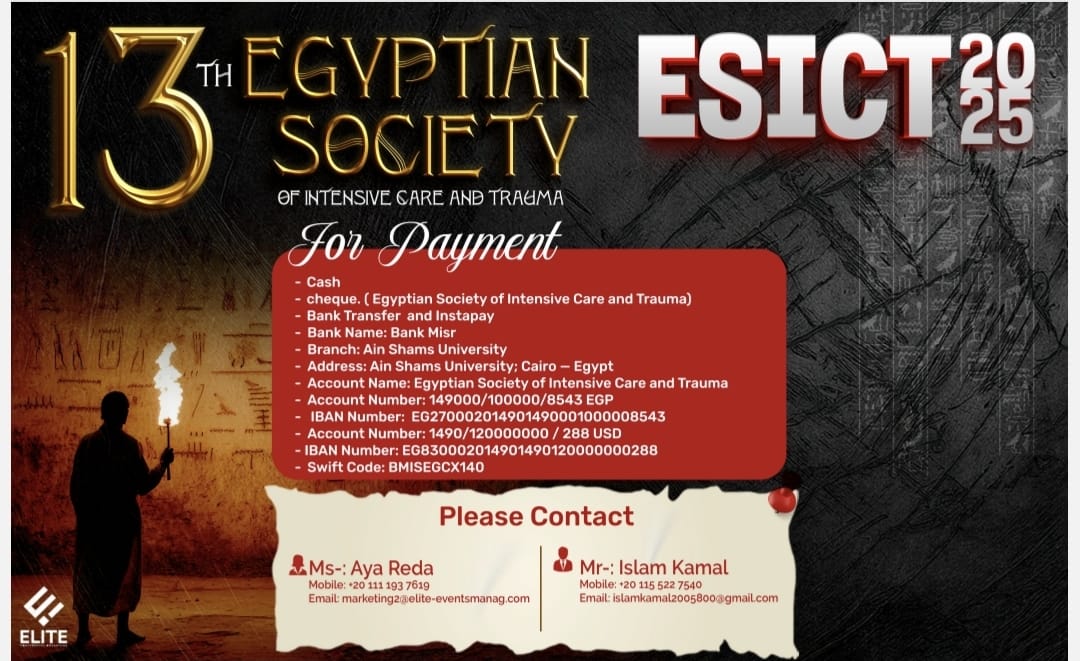 One of the key pillars of our mission is to organize our Annual Conference, a hallmark event that brings together leading experts from across the globe. This year, under the theme “Pillars of Intensive Care Practice in Egypt,” the conference will focus on the evolving landscape of ICU management, trauma care, and the future of critical care. We are proud to host national and international speakers, and we are confident that the event will provide valuable insights and foster meaningful collaborations.