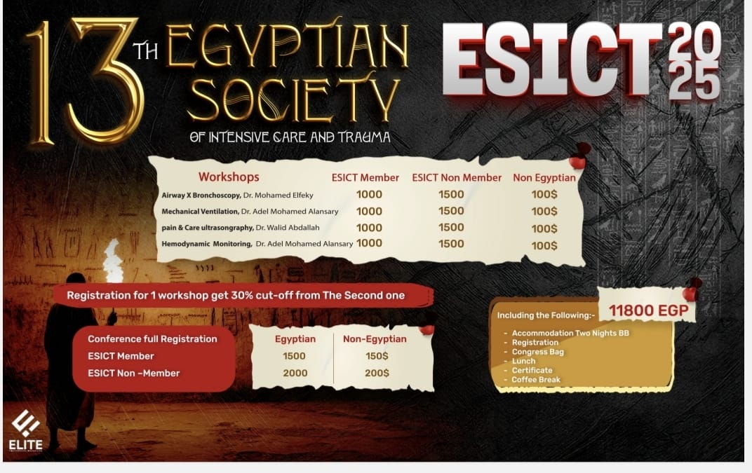 Joining ESICT gives you access to an engaged community of intensive care and trauma professionals who are committed to lifelong learning and improving healthcare standards in Egypt. Member benefits include: